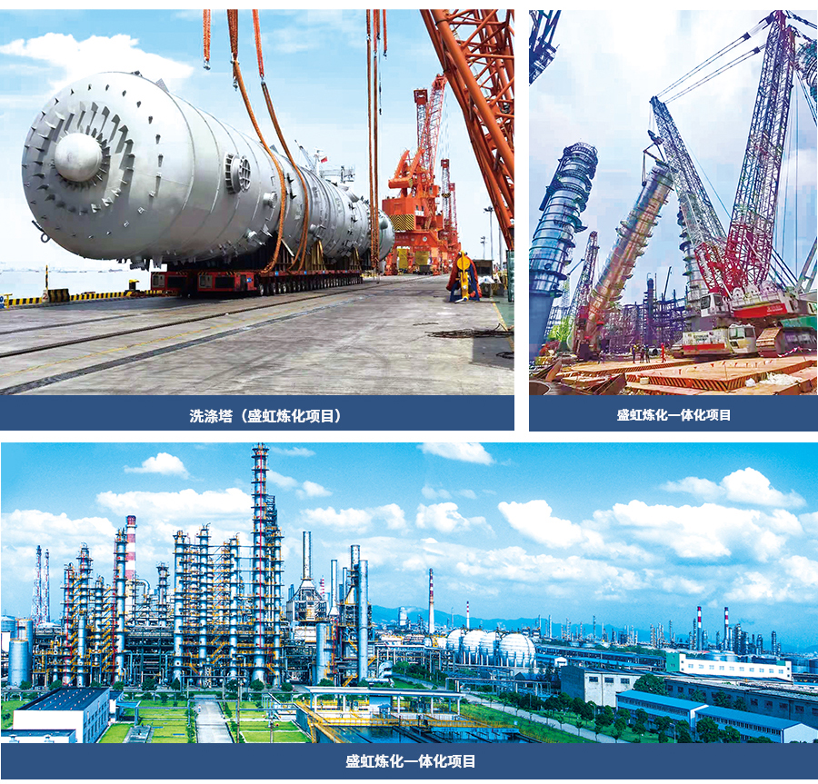 恒逸文萊石化項目是“一帶一路”的標(biāo)志性項目,公司同時參與了恒逸文萊石化一期、二期項目的核心關(guān)鍵設(shè)備,主要有抽余液塔、二甲苯塔、常壓塔、減壓塔等大型超限設(shè)備12臺,總金屬重量近5000噸。