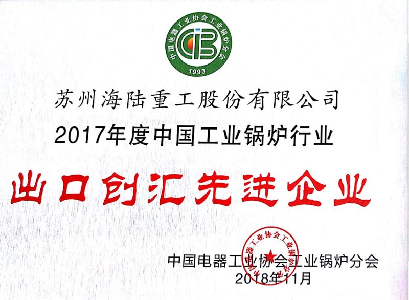 “2017年度中國工業鍋爐行業出口創匯先進企業”