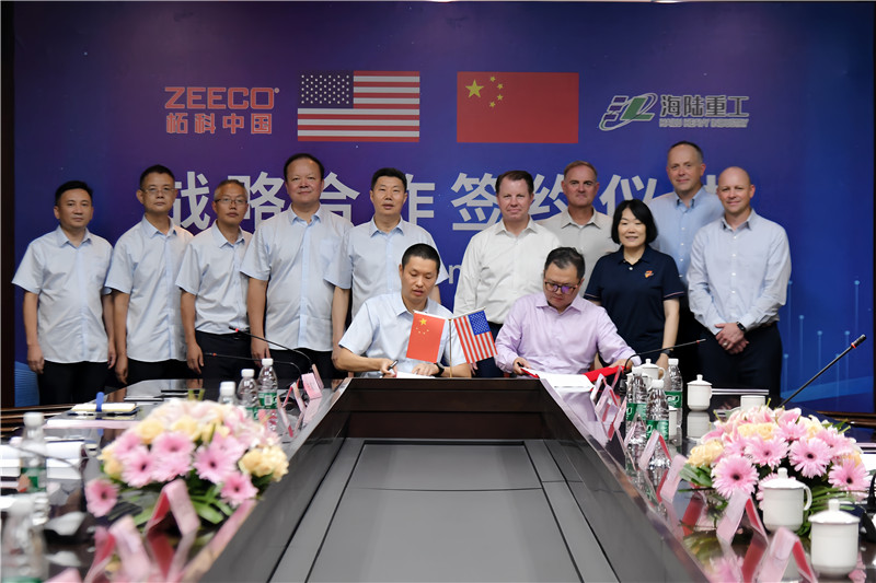 8月23日,蘇州海陸重工股份有限公司與柘科(中國)工程設(shè)備有限公司簽署戰(zhàn)略合作協(xié)議。美國ZEECO全球總裁及首席執(zhí)行官Darton Zink先生率領(lǐng)高級副總裁Terry W. Dark、制造總監(jiān)Darrell Thomas、市場和業(yè)務(wù)總監(jiān)Brent Williamson、東南亞分公司總經(jīng)理Anand Gokhale、柘科(中國)總經(jīng)理馬原及管理團(tuán)隊,海陸重工董事長徐元生、總經(jīng)理徐冉等公司主要領(lǐng)導(dǎo)共同出席戰(zhàn)略合作簽約儀式。
